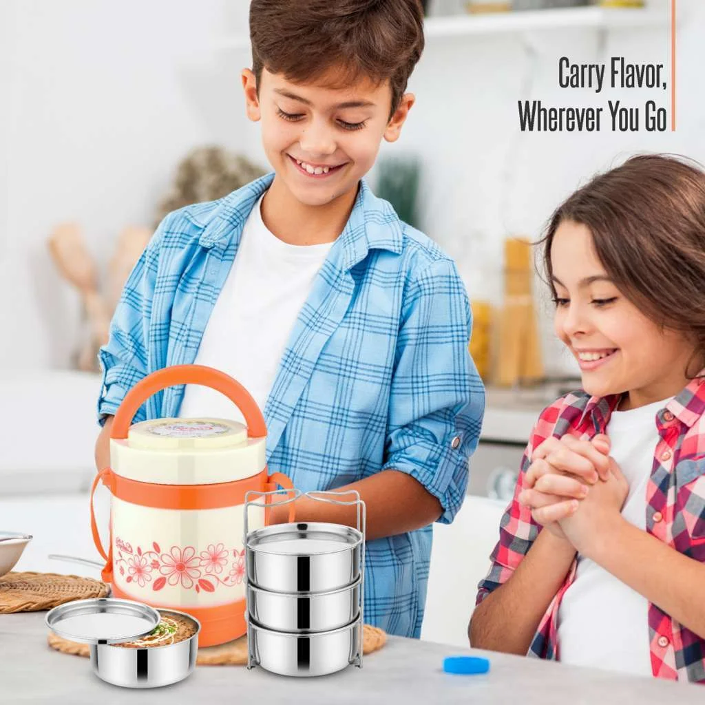 The Cute & Compact Carry Lunch Box Manufacturers & Suppliers in India offer high-quality, durable, and user-friendly lunch boxes designed for everyday meals. Buy the Cute & Compact Carry Lunch Box online! Perfect for school, office, or picnic. Durable, stylish, and easy to carry. Order your lunch box today. Made from premium stainless steel, the Cute & Compact Carry Lunch Box ensures food hygiene, long-lasting durability, and resistance to wear. Its airtight lids prevent spills and maintain the warmth and freshness of meals throughout the day.