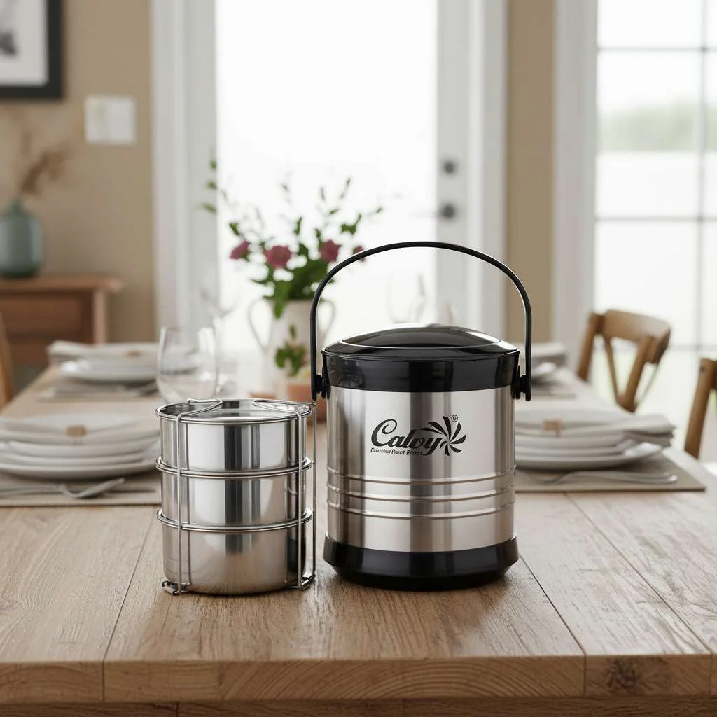 The Carry Tiffin Box Manufacturers & Suppliers in India provide high-quality, durable, and user-friendly lunch boxes for daily use. Carry Tiffin Box Manufacturers & Suppliers in India provide stainless steel containers with airtight lids for fresh, warm, and convenient. Shop durable carry tiffin boxes from trusted manufacturers. Perfect for office, school, or picnic. Order your premium lunch box today! Constructed from premium stainless steel, the Carry Tiffin Box is hygienic, long-lasting, and resistant to wear. Its airtight lids prevent spills and retain the freshness and warmth of your meals throughout the day.