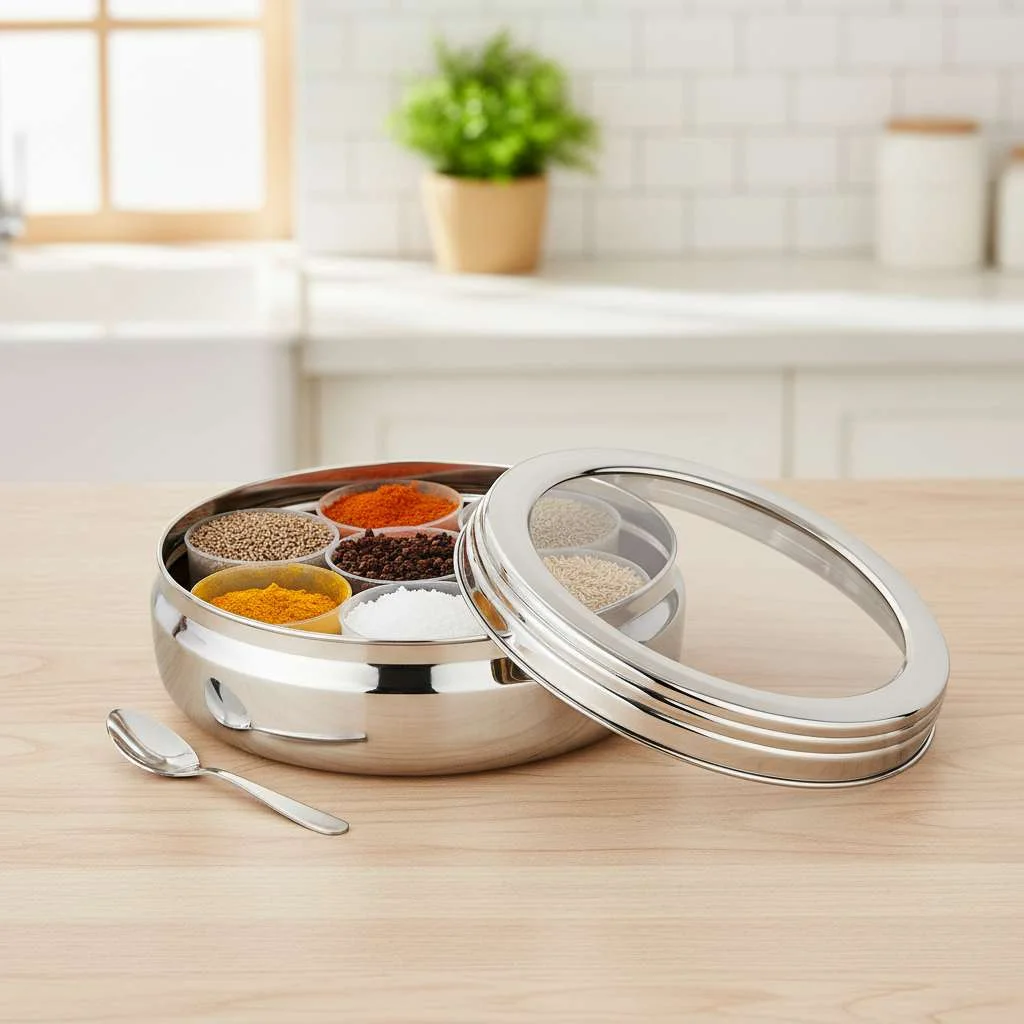 Manufactured using durable, food-grade plastic or stainless steel, each section is carefully crafted to maintain the authentic flavor of spices while preventing cross-contamination. The tight-sealing lid ensures that your masalas stay dry and moisture-free, even in humid environments.