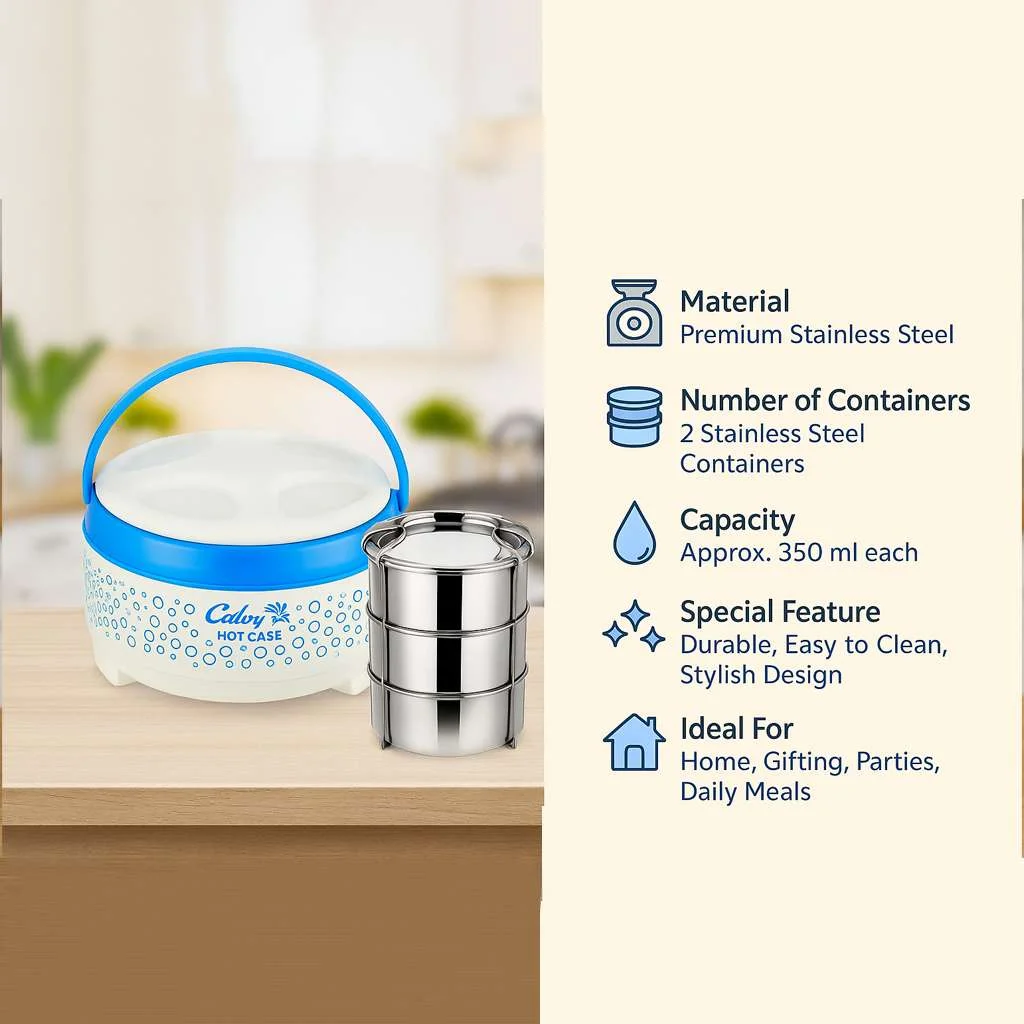 Calvy, a reputed Steel Lunch Box Gift Sets Manufacturer & Supplier in India, emphasizes premium quality, attractive design, and long-lasting usability. The gift sets are made from durable, food-grade, and aesthetically pleasing materials, ensuring they are both functional and visually appealing.